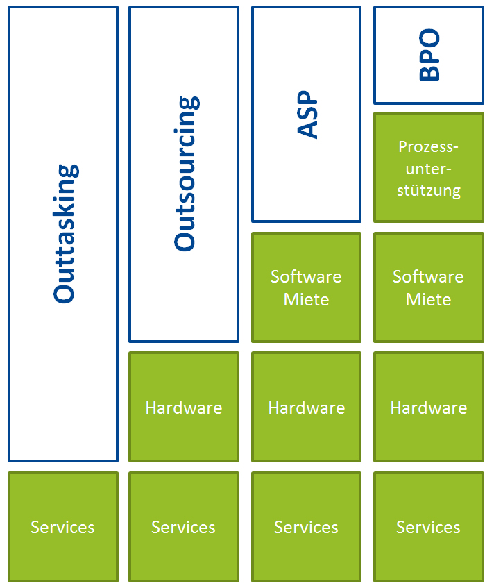 • Outsourcing von IT-Infrastruktur bis hin zum Application Service Provider Modell (ASP)