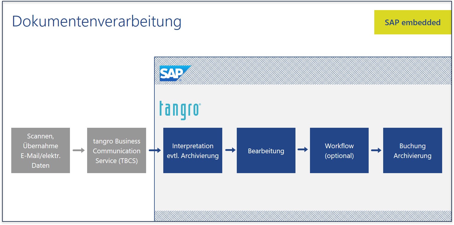 tangro-Software erkennt Dokumenteninhalte automatisiert und bildet interne Kontroll- und Freigabeprozesse elektronisch ab. Ohne Schnittstellen. Direkt in SAP – und selbstverständlich auch S/4HANA. Sie erreichen mehr Effizienz im Unternehmen durch Zeit- und Kostenersparnis. Die Transparenz steigt. Ihre Mitarbeiter werden von Routinearbeiten entlastet.